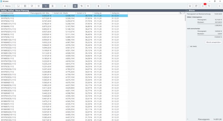 Automaattinen hinnoittelu älykkään logiikan avulla. KPS.MAX-lohkonlaskenta määrittää automaattisesti parhaan myyntihinnan asiakkaallesi ja parhaan ostohinnan sinulle. Se toimii taustalla, päivittyy jatkuvasti ja takaa nopean hinnoittelun asiakkaallesi - milloin tahansa suunnitteluprosessin aikana.