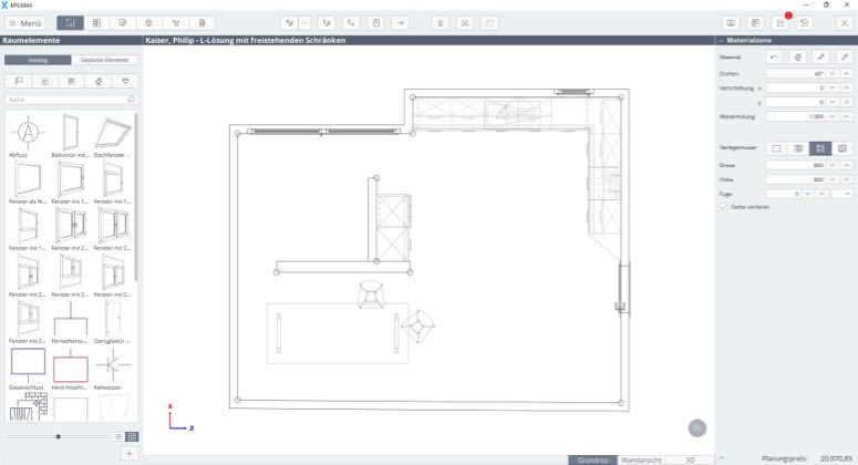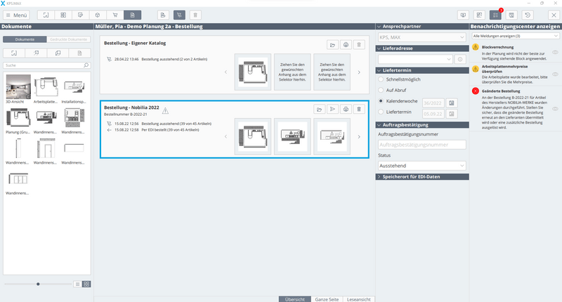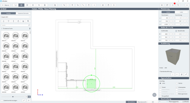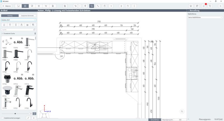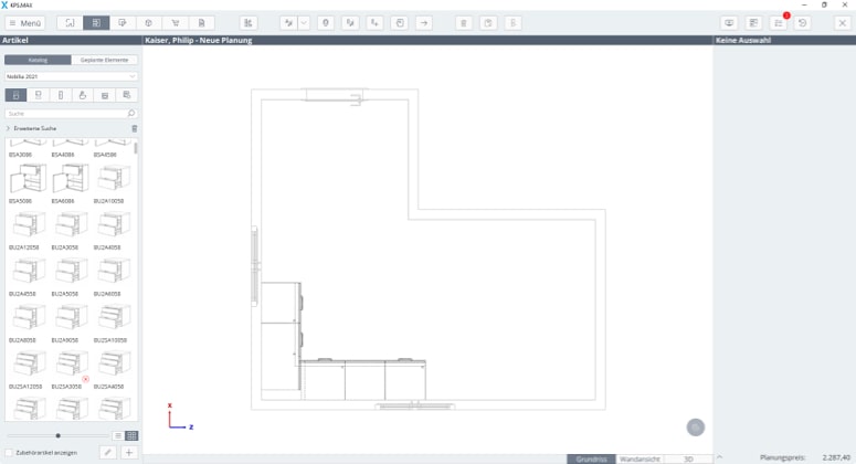 Älykäs automaatio yksinkertaistaa suunnitteluprosessia. Pitkät osat, kuten työtasot, sokkelit ja välitilat, lisätään automaattisesti KPS.MAX-suunnitelmaasi kalusteiden sijoittamisen yhteydessä. Tämä prosessi valitsee oikeat tilattavat tuotteet, laskee määrät ja lisää kaiken tarvittavan ostoskoriin. Työtason muotoja ja kokoja voi myös muuttaa tarvittaessa. KPS.MAX poistaa näin toistuvat ja aikaa vievät tehtävät ja mahdollistaa suunnitelmien tekemisen entistä tehokkaammin.